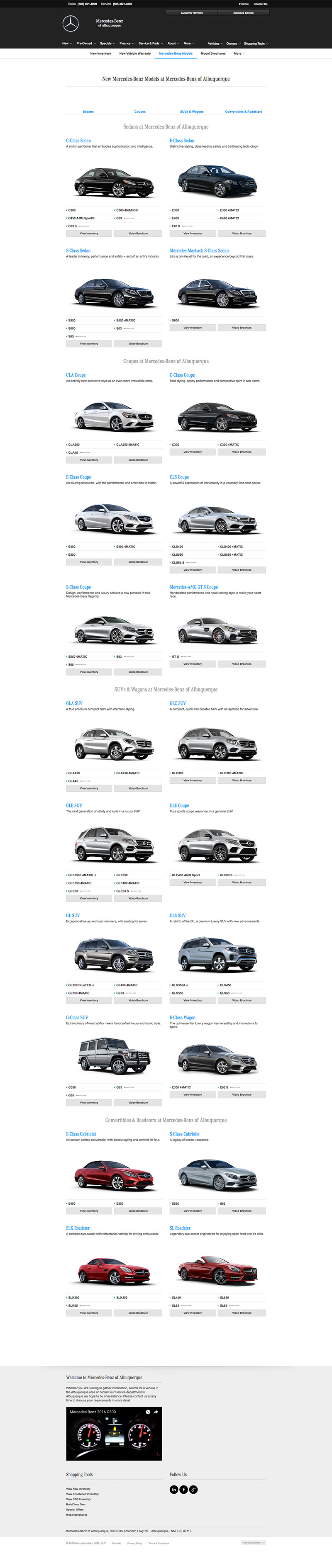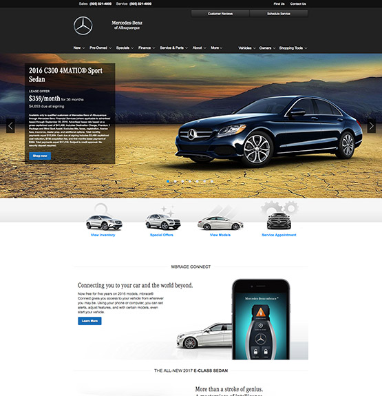 Local brand compliant Mercedes-Benz dealer websites with National content used to showcase new, used and future model information, dealer parts & services, finance applications, lead generation forms and a live automated inventory feed for all vehicles in stock.
