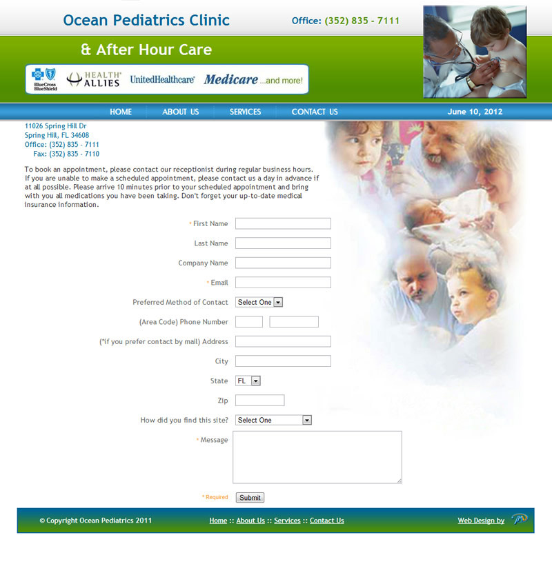 Clinic's informational website used for listing services, location/contact information and setting up appointments.
