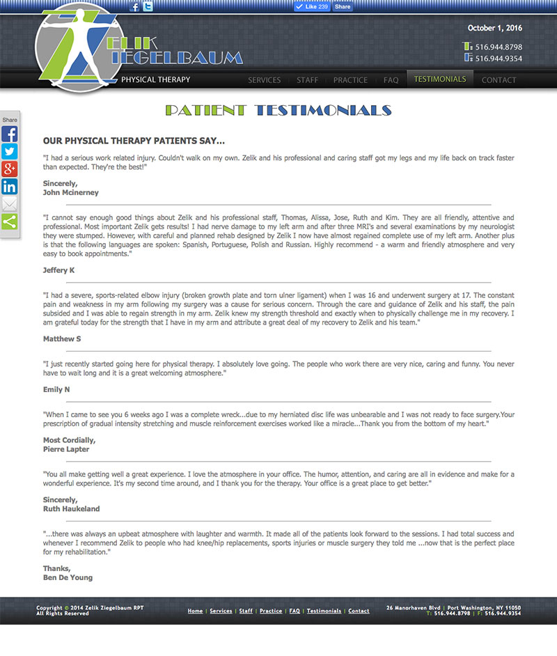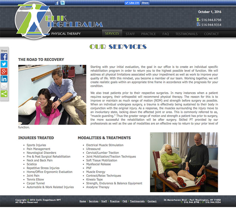 Clinic's informational website used for listing services, location/contact information and setting up appointments.