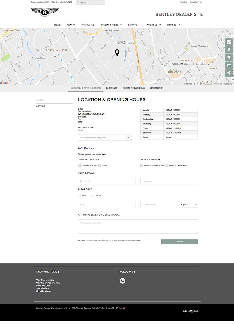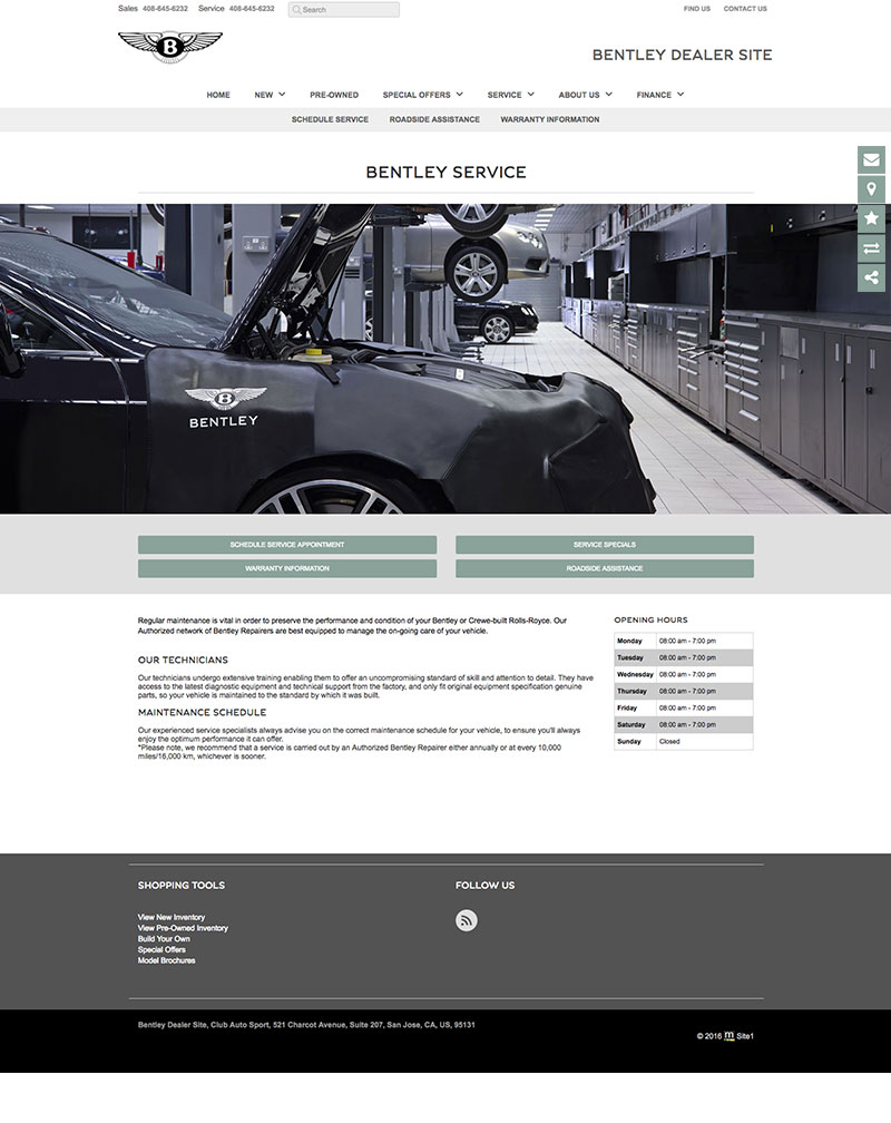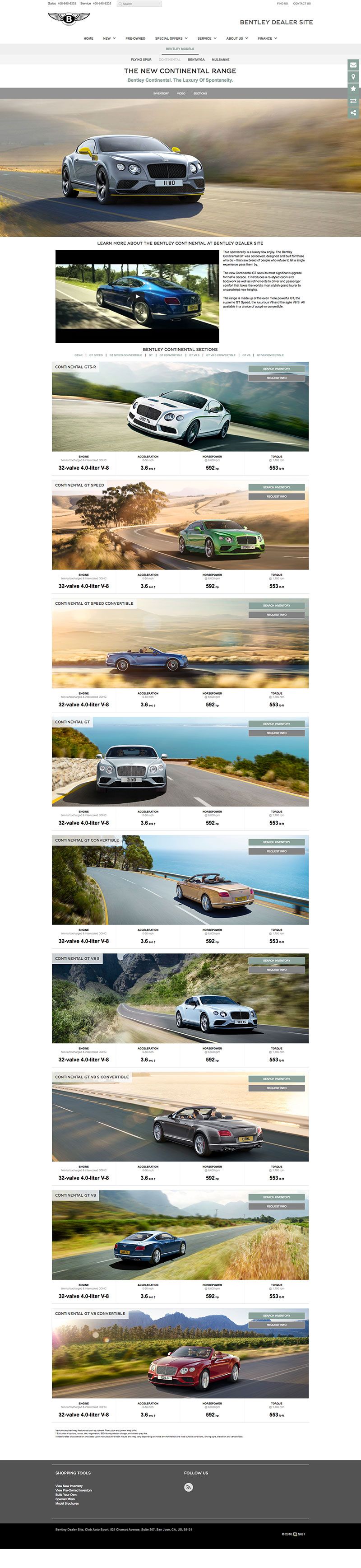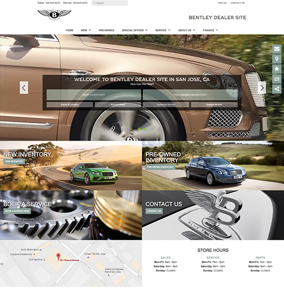 Local brand compliant Bentley dealer websites used to showcase new model information, dealer parts & services, finance applications, lead generation forms and a live automated inventory feed for all vehicles in stock.