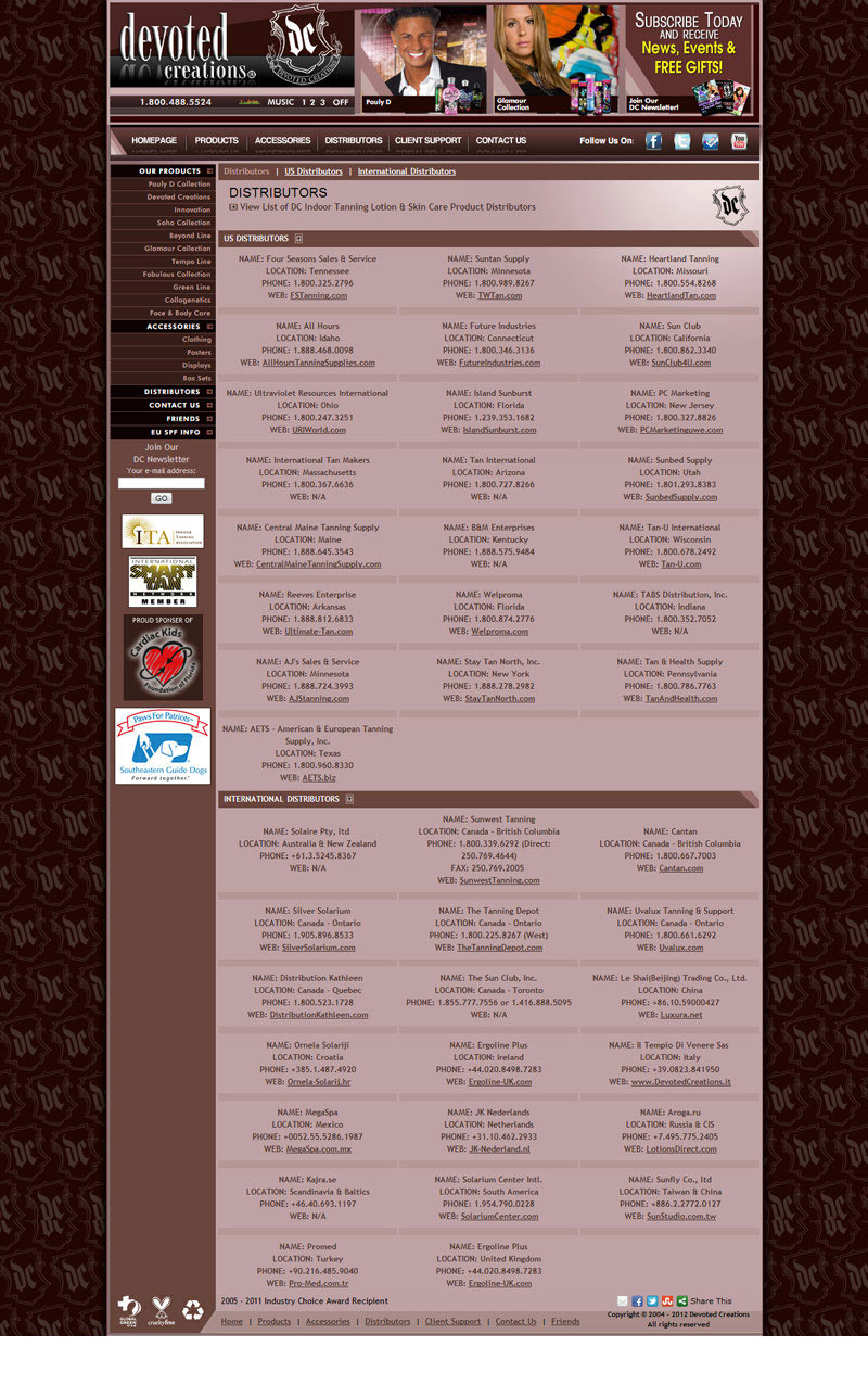 Product catalog and informational website used for branding, B2B transactions, and marketing material.
