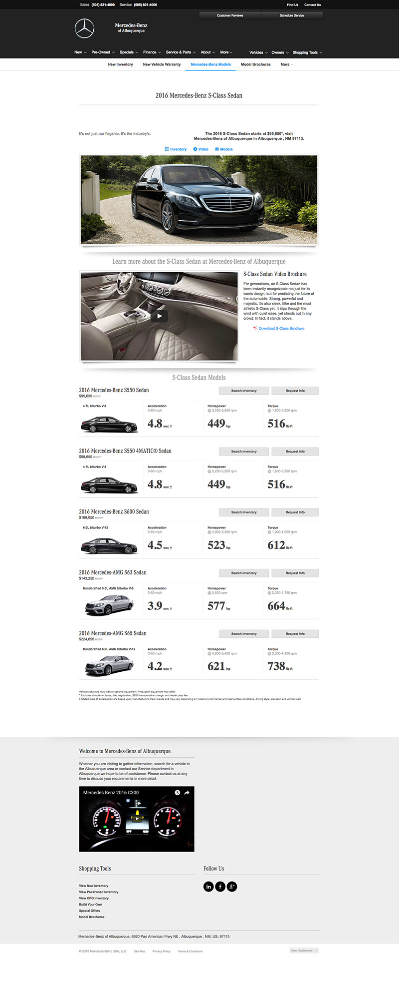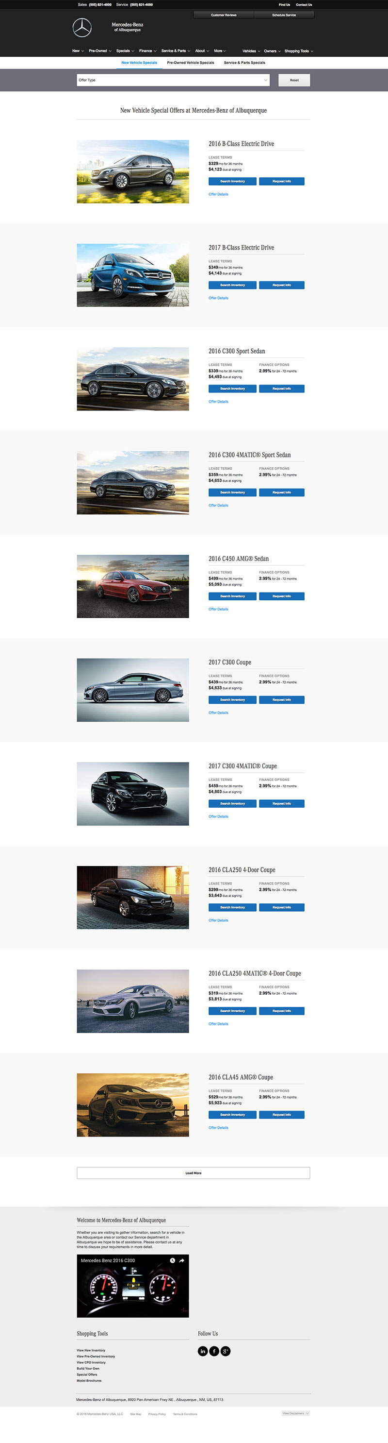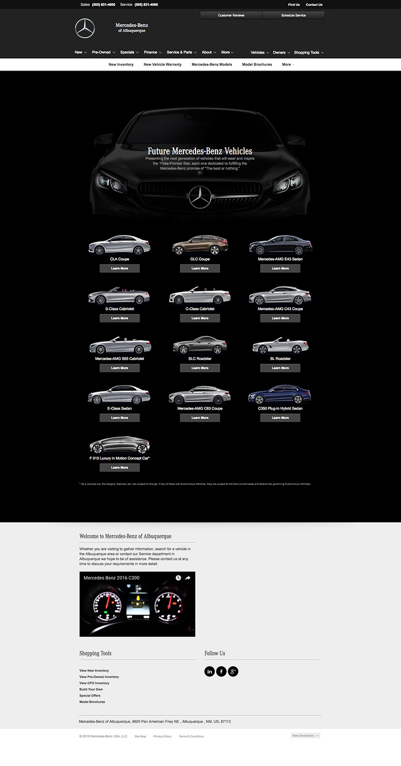 Local brand compliant Mercedes-Benz dealer websites with National content used to showcase new, used and future model information, dealer parts & services, finance applications, lead generation forms and a live automated inventory feed for all vehicles in stock.