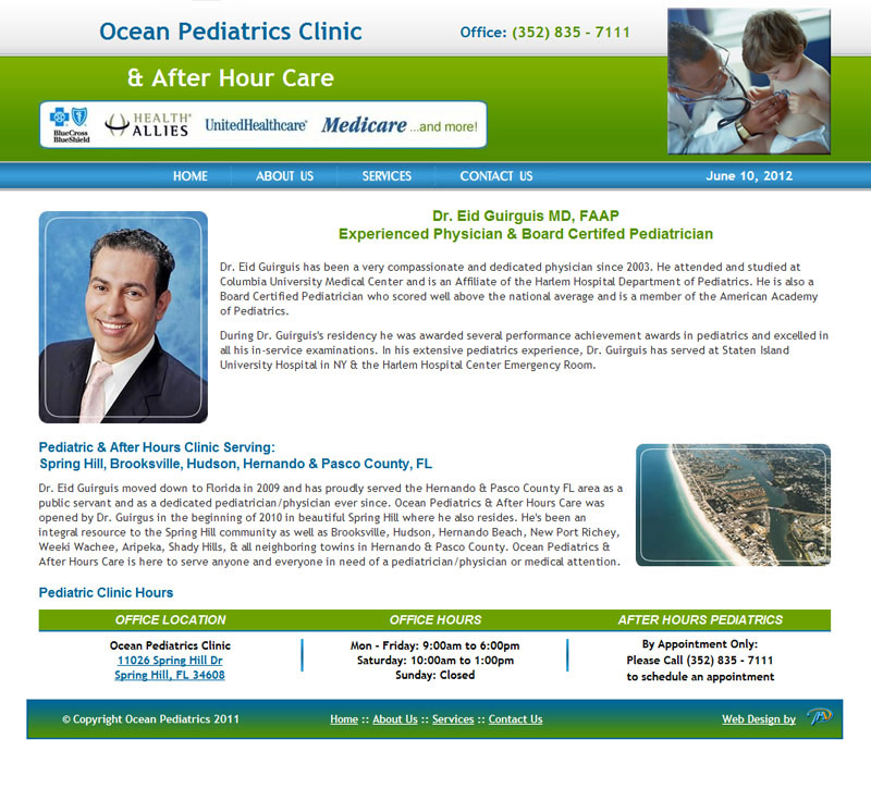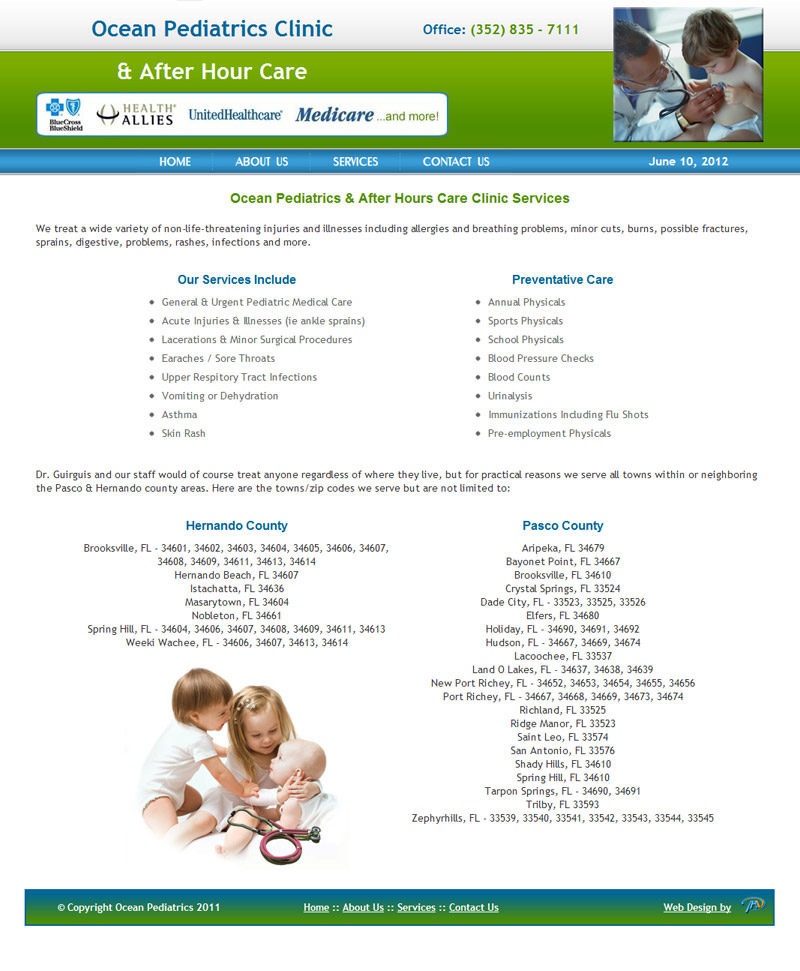 Clinic's informational website used for listing services, location/contact information and setting up appointments.