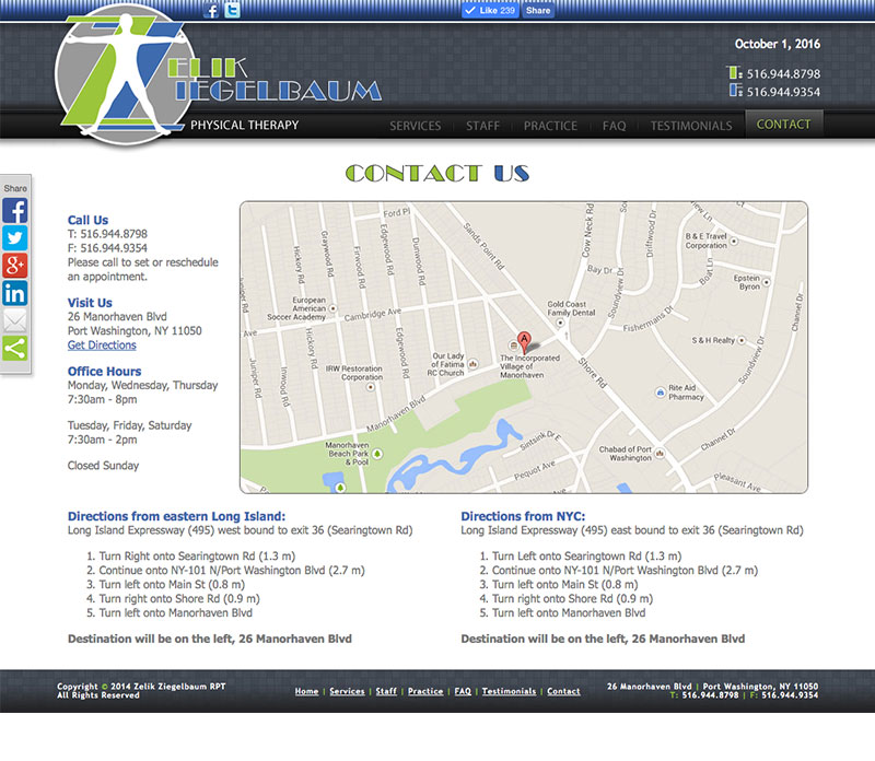 Clinic's informational website used for listing services, location/contact information and setting up appointments.